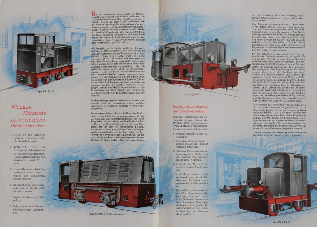 Die Rheiner Maschinenfabrik Windhoff AG beeinflusste in den Jahren 1920 bis 1955 mit fortschrittlichen Konstruktionen maßgeblich die technische Entwicklung des Lokomotivbaus. Mit eigens entwickelten und produzierten Lokomotivmotoren und -getrieben setzte Windhoff bemerkenswerte Impulse beim Bau von normal- und schmalspurigen Motorlokomotiven. Erst mit dem allgemeinen Verschwinden der Feldbahnen in den 50er Jahren stellte Windhoff nach über 600 gebauten Feld- und Rangierlokomotiven auch die Produktion ein.